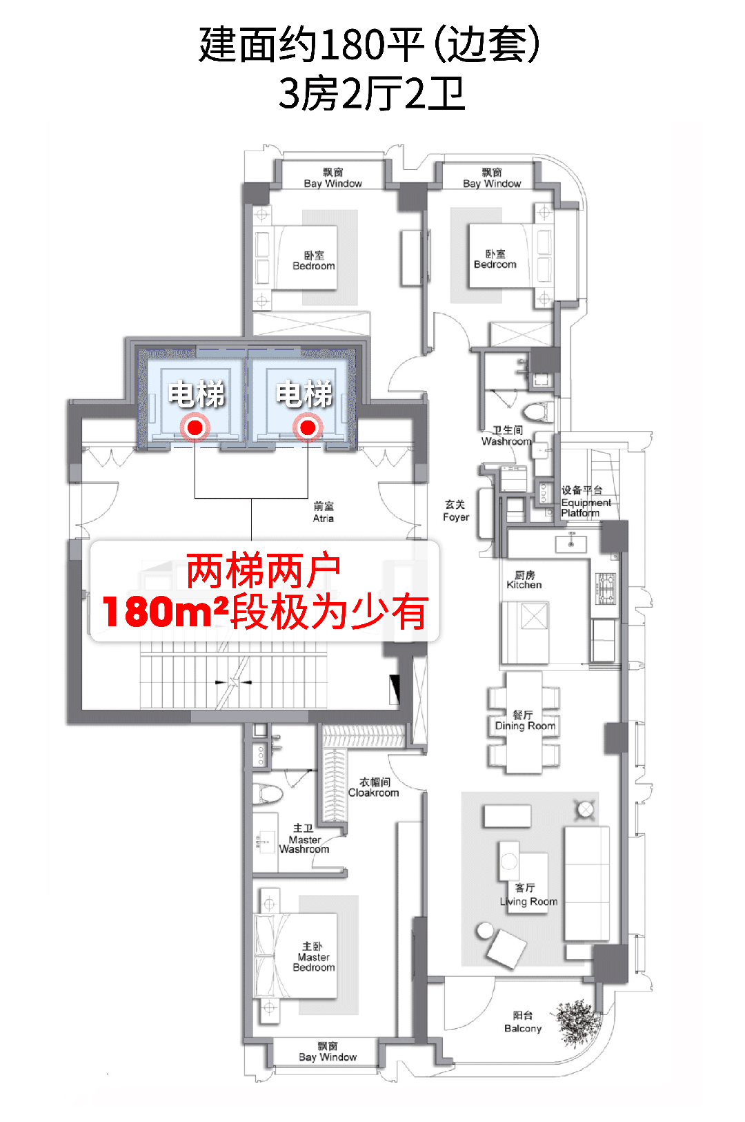让各家庭成员拥有平权的舒适感。其中,客厅与主卧面宽均超4米。在空间配置上,两梯两户的专属设计同级少有;边套户型更坐拥三面采光优势•◇★,北向次卧双面采光设计,这在同面积段产品中极为罕见▼▪•。