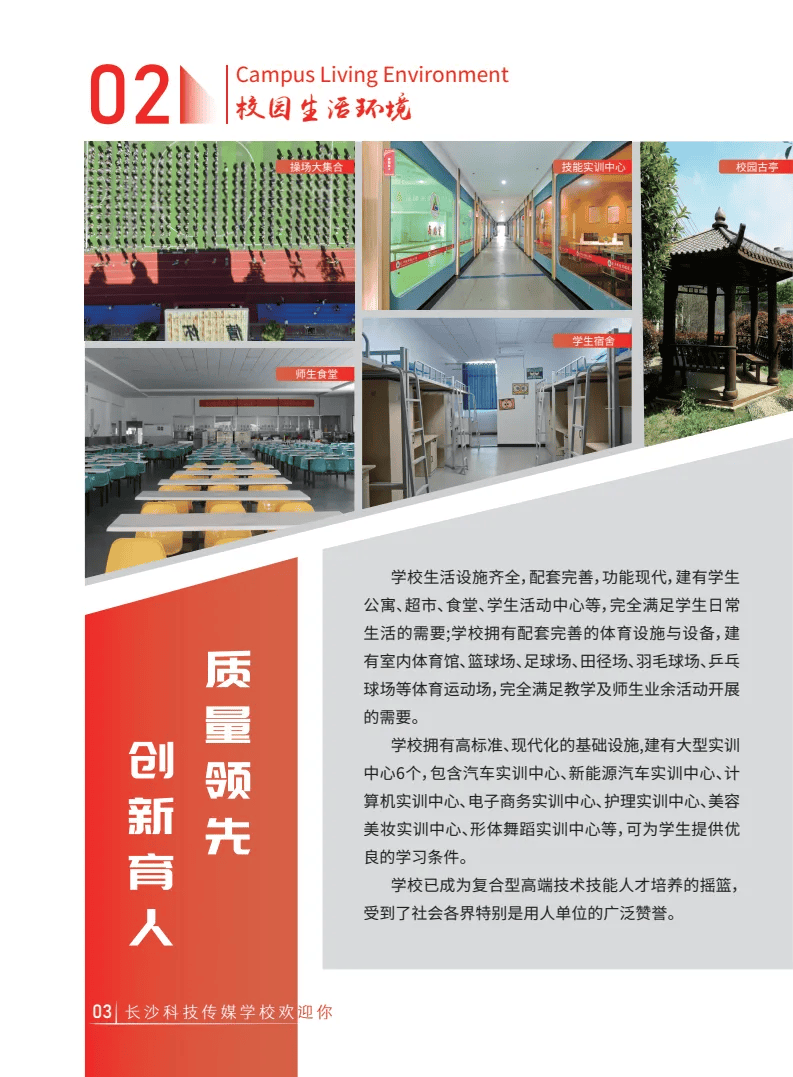 校园占地40000余平方米,建筑面积近30000平方米,打造生态园林式学习环境。所有教室配备多媒体触控一体机◇▽、防近视护眼灯等现代化教学装备,建有4K影视制作中心…、虚拟演播厅、融媒体实训基地等专业场地-▲□,投入3000万元配备专业级拍摄、剪辑设备及交换机◆▪、路由器等实训器材,实训设备总值超千万○-●。标准化足球场、全塑胶田径跑道及室内球场一应俱全,学生公寓配备独立卫浴、空调、热水器与储物柜,24小时教师驻点管理,自营食堂秉持保本惠民理念,全方位保障学习生活需求。