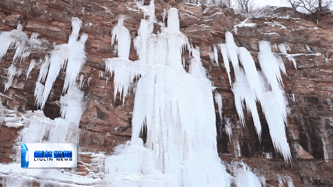 冬日的柳林县北辛安村,山体间呈现出震撼人心的冰挂奇观=•。流淌不息的山泉水在低温作用下凝结成形态各异的冰晶…★,沿岩壁铺展延伸•○•,形成长达数百米的“冰雪画廊”▲★,吸引了摄影爱好者慕名前往。】