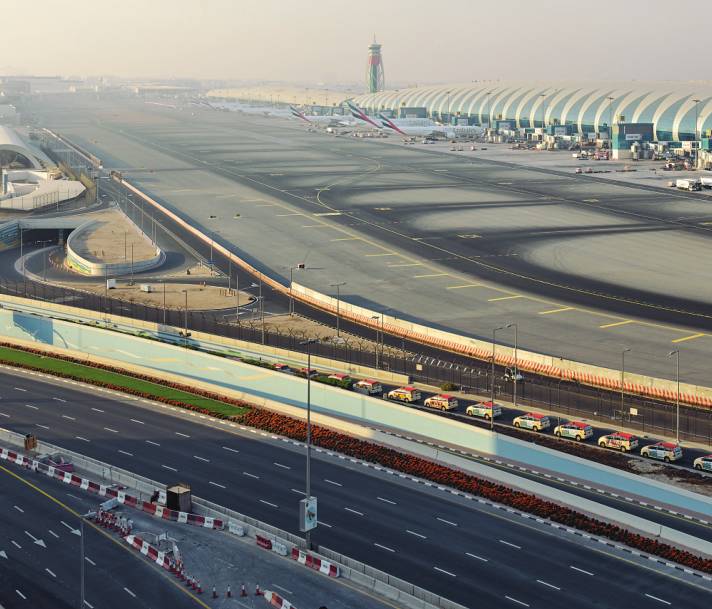 从迪拜海边鳞次栉比的摩天大楼和高档购物场所朝沙漠方向驱车半小时■◁,就是迪拜政府精确按照阿航的规格要求▷、斥资320亿美元建造的有5条跑道的超级航空枢纽。其雄心壮志从枢纽的名字上就可一览无余:迪拜世界中心。