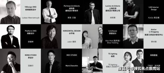 包括外滩华尔道夫酒店的缔造者波特曼建筑设计事务所△•、来自中国香港的先锋设计机构10Design和Platform,参与设计上海新天地的日清建筑设计•,擅长室内空间设计的LSD Interior Design▼▼◇、水平线▼、Linehouse、NONG STUDIO以及设计外滩建筑群灯光照明的TS lighting等。
