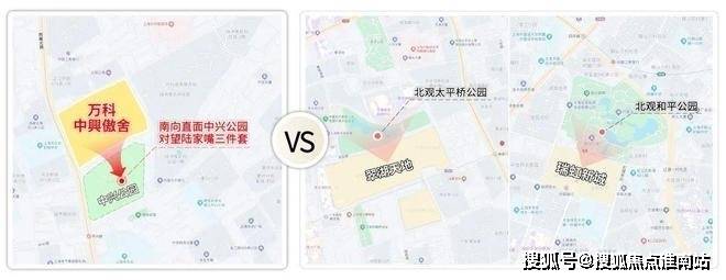 对比翠湖天地○、瑞虹新城「北向望公园」的视野▪▲•,中興傲舍「南向观园、俯瞰城市」的双重景观特权,在上海顶豪市场堪称限量版机遇。