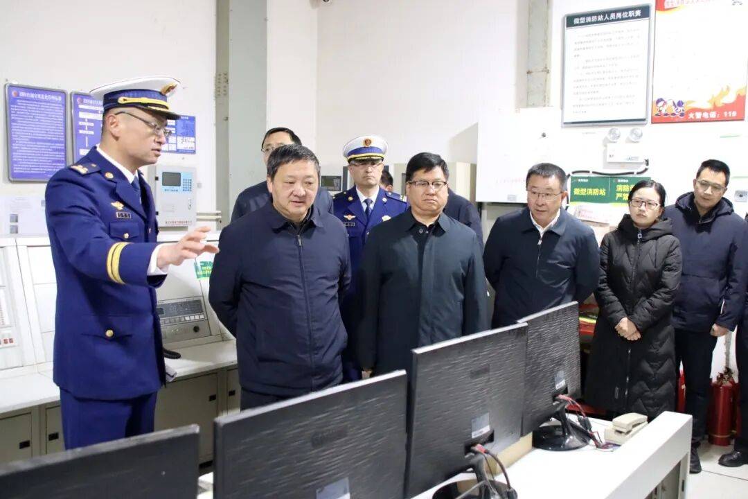 12月30日上午◁,杨国宗▲、陈真永一行在腾瑞幸福里实地了解消防控制室值班值守等情况。