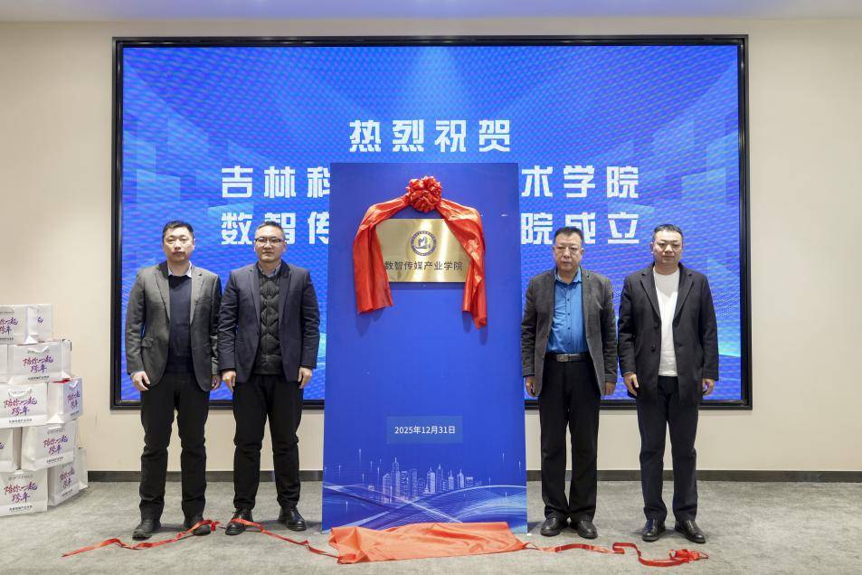为深度融入国家“数字中国”•=▷“文化强国”战略布局,全面落实职业教育产教融合◁、校企合作发展要求,精准锚定吉林全面振兴全方位振兴核心目标,靶向破解传媒产业高素质技术技能人才供给瓶颈,12月31日,吉林科技职业技术学院数智传媒产业学院成立揭牌暨校企合作签约仪式隆重举行。活动以学院揭牌为核心、校企签约为纽带、校地校媒协同平台为支撑,构建“政校行企媒□•”多元协同育人生态,为东北区域传媒产业数字化转型与高质量发展注入硬核人才动能☆。