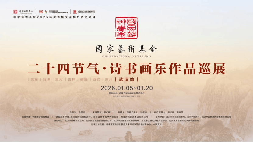 △“二十四节气·诗书画乐作品巡展”系文化和旅游国际传播项目、国家艺术基金2025年度传播交流推广资助项目。展览由中国数字文化集团主办,湖北省文化和旅游厅•◁、湖北省文学艺术界联合会□★、湖北文化旅游集团有限公司联合主办◇。