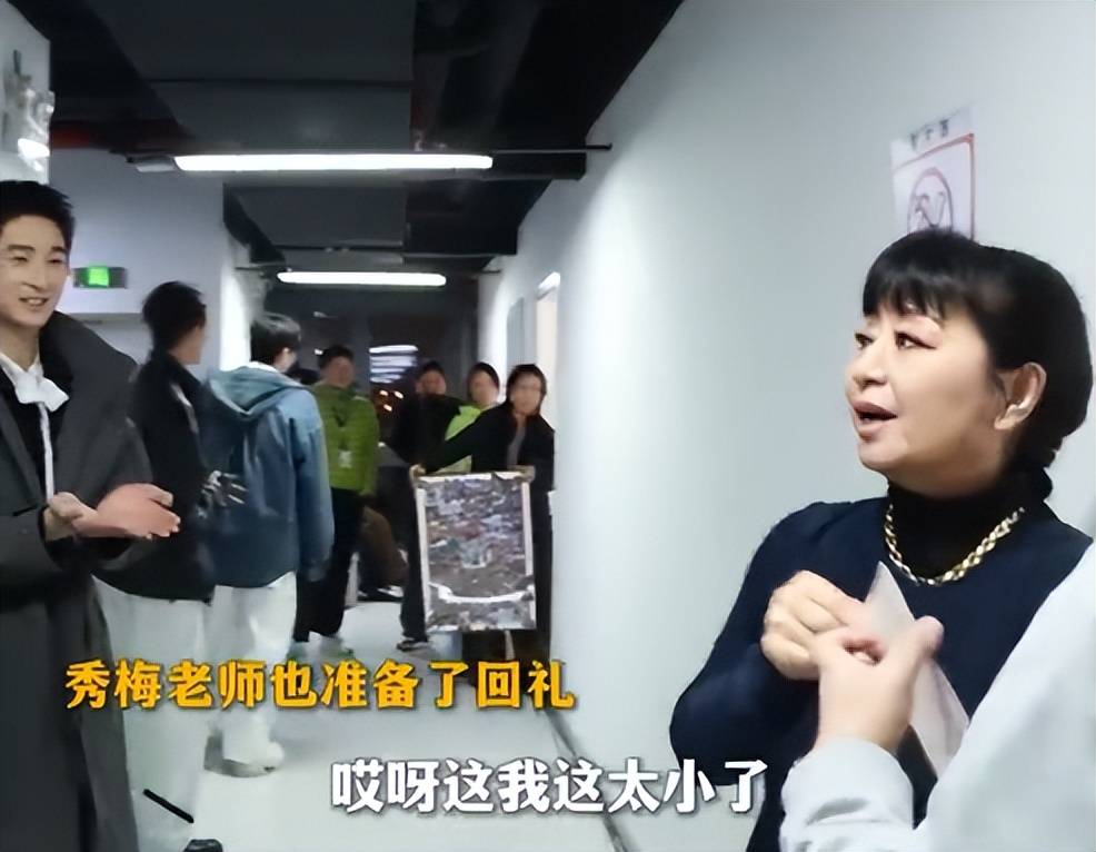 在湖南卫视后台化妆间,导师那英看的了《声鸣远扬2025》六强选手们来了,得知大家是来给殷秀梅送礼物的,那英赶紧招呼殷秀梅出来迎接。《声鸣远扬2025》六强选手们集体为殷秀梅送上了礼物,而且还把这个牌匾中间的“咬好中国字,唱好中国歌”这10个大字现场读给殷秀梅老师听△☆★。最后△,殷秀梅老师还和《声鸣远扬2025》六强选手合影留念○。