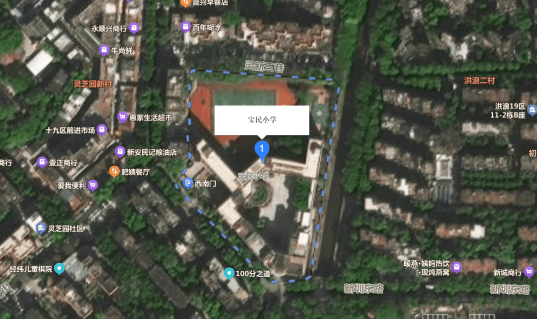 宝民小学、灵芝小学●◆▲、宝安中学(集团)实验学校(小学部)、宝安中学外国语学校(集团)新蕾小学组成共享学区。
