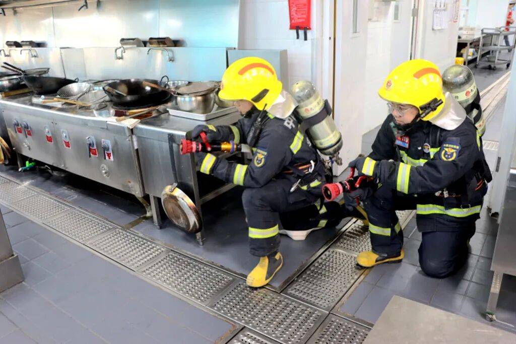 消防救援站深入青年国际大酒店等人员密集场所开展熟悉演练,指战员先对酒店客房区、宴会厅、厨房、消防控制室等重点区域进行全面熟悉,详细核查疏散通道■、安全出口畅通情况,测试消火栓、灭火器等消防设施有效性,精准掌握建筑结构、功能布局及消防水源分布。随后,模拟二楼厨房起火场景开展演练,按预案完成火情侦察★=、人员搜救●……、火势控制等环节,全程分工明确、衔接顺畅。