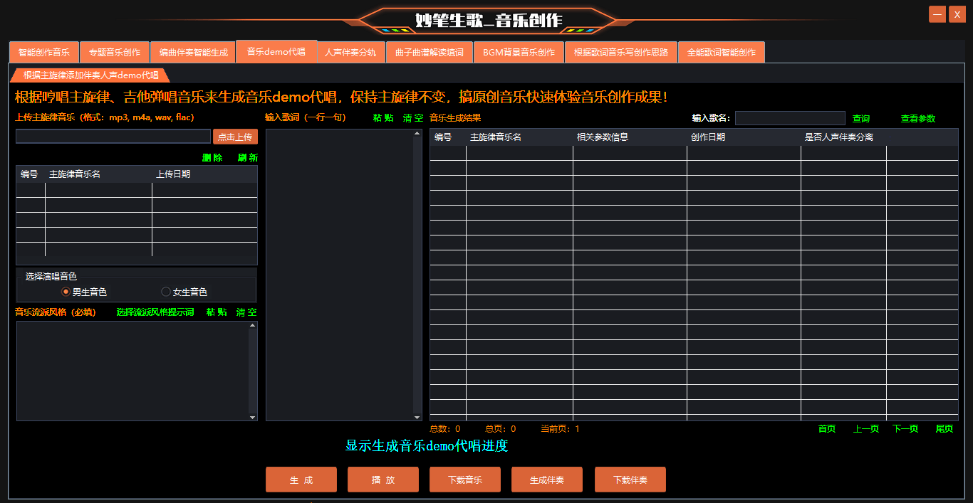 在音乐创作的世界里,传统批量demo的制作一直是一个漫长且繁琐的过程。音乐人往往需要投入大量的时间和精力,从寻找合适的演唱者★•、安排录音时间▽◁=,到后期的剪辑和优化▽▷,每一个环节都需要精心打磨,这使得demo的制作周期动辄数周甚至数月•◁◇。然而=★,如今科技的发展为音乐创作带来了全新的变革•◆,《妙笔生歌》是一款AI智能创作音乐软件▽○,可以AI代唱demo,AI编曲作曲,AI给清唱哼唱作伴奏,AI输入文字要求写歌★,AI演唱歌曲,AI曲谱歌曲填词◁○,AI写歌词等全方位辅助音乐人做歌曲创作,其中AI代唱demo软件更是成为了音乐人手中的得力工具,帮助他们快速完成以往耗时的任务。
