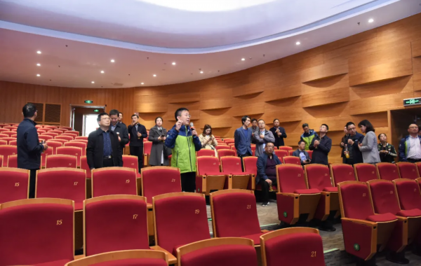 最后,嘉宾们参观了融媒体中心剧场,这是一个中大型的剧场,上下两层一共有800多个座位,市里的大型会议会在这里召开,一些大型活动也会在这里举办,锡剧大戏经常在剧场上演。