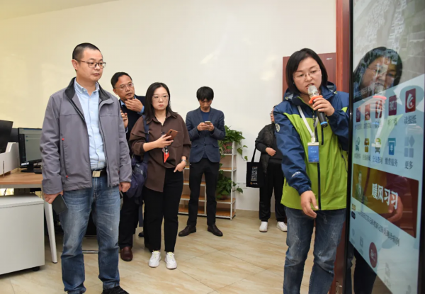 在三楼,嘉宾们参观新媒体工作区。在守好传统媒体阵地的同时,溧阳市融媒体中心用心拓展新的传播途径,特别是“三微一网一端”的新媒体建设,如官方微信公众号“中国溧阳”“融溧阳”、溧阳时空网站,以及正在大力推广的“自在溧阳”APP,推行“移动优先”的理念,深入推进直播活动的开展。