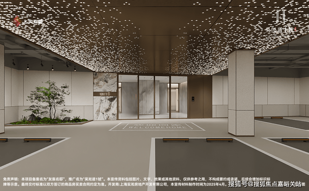 当多数地库还停留在满足基础功能性阶段,吴淞道1號已将车库升维成艺术归家剧场。相比传统车库窄车道与压抑管线米宽阔车道搭配格栅吊顶,利落线条消解逼仄感,行车视野更开阔,会车更轻松从容。