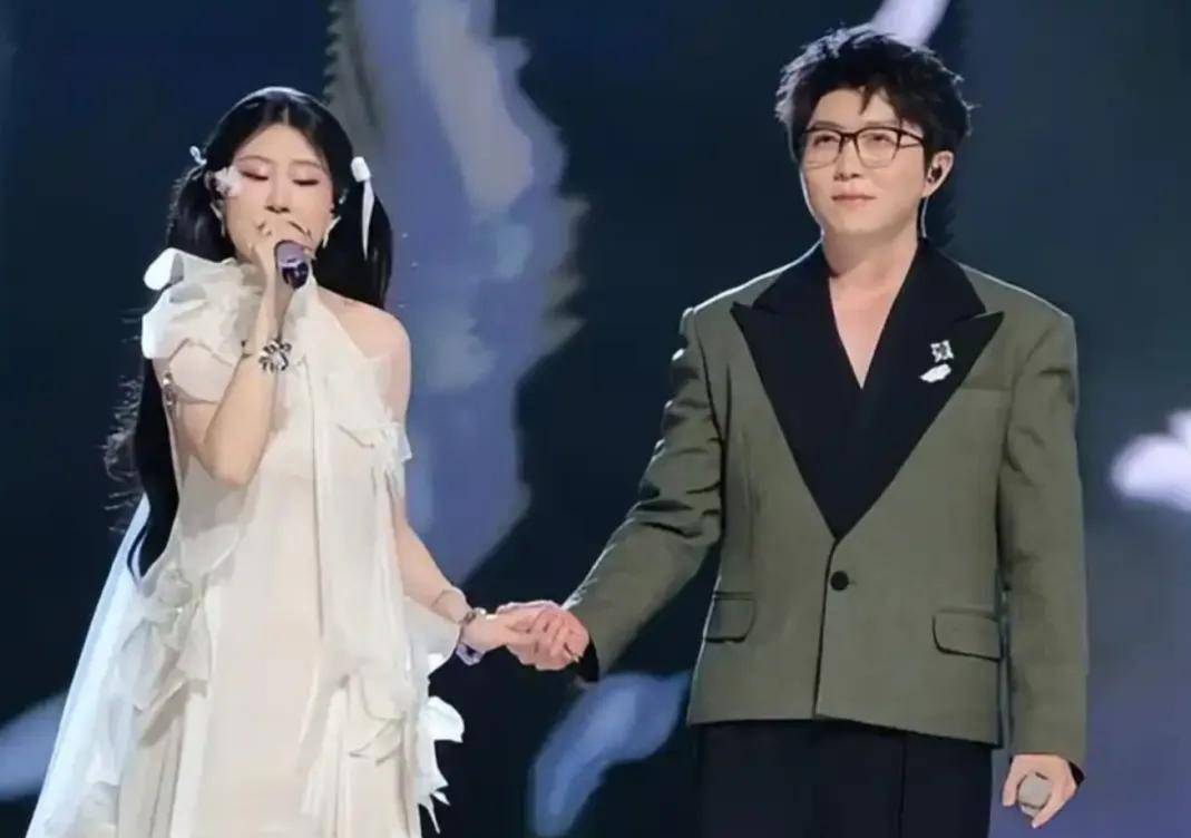 可谁能想到,打脸来得这么快! 江苏卫视跨年晚会成了她的滑铁卢。 她和毛不易合唱《不染》,全程跑调、抢拍,气息不稳到声音发颤,最后直接在台上哭了。 毛不易还想救场,伸手安抚她,可根本拉不回她那飘到外太空的调子。